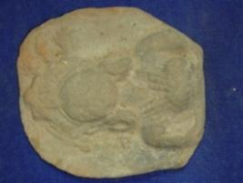 | Description / विवरण | Terracotta female bust probably of a yakshi on low relief. She is wearing a crown with pearl string in the right side and feather in the left side, earrings and necklace is visible. |