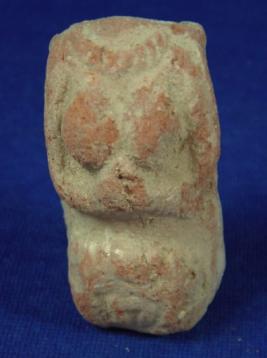 | Description / विवरण | Terracotta female figurine, in standing positions on low relief. The head and legs below thigh is missing. Her hands are in namaskara mudra. The breasts and genital organ is prominent. She is adorned with necklace and bangles |