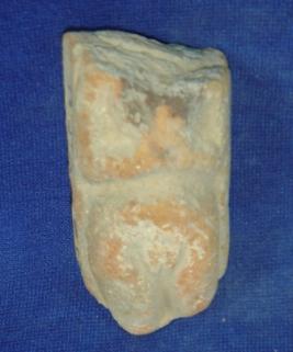 | Description / विवरण | Terracotta female figurine, in standing position on low relief. The head upper part of bust and legs below knee is missing. She is nude and standing in namaskara mudra. |