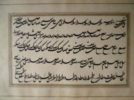 | Description / विवरण | This is a hand written epithet written in 1274 Hijri. It deals with praising of God. It is written in persian script within a multicoloured border. |