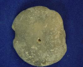 | Description / विवरण | Terracotta wheel with biconvex surface and tiny perforated hole in the center. It is to fix the axle of toy cart. |