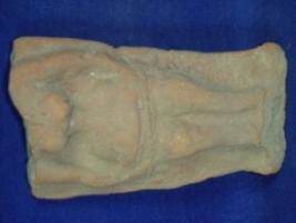 | Description / विवरण | Terracotta female figurine, probably a Mother Goddess, only the body below neck is visible. She is in standing position and nude, except bedecked with a girdle, depicted with incised lines. Her hands are lying parallel to her body and her feet are missing. |