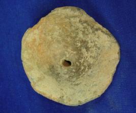 | Description / विवरण | Terracotta wheel, crudely made, with a hole at the center to attach it with the axle. The portion near the hole is raised outwards. |