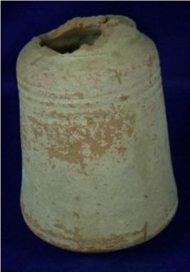| Description / विवरण | Terracotta jar of cylindrical shape, flat circular base and low neck. There are striation marks on the upper part of the body. The portion above neck is broken. The wheel marks are prominent in the inner part. |