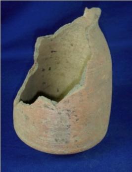 | Description / विवरण | Terracotta jar of cylindrical shape and flat circular base. There are striation marks all over the body. It is broken diagonally. |