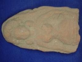 | Description / विवरण | Terracotta female figurine, probably a Mother Goddess in low relief, in standing position. Body below hip is missing. She is having an elaborate headgear and bedecked with ear rings and a girdle on the waist. Her hands are lying parallel to her body. The whole figure is almost mutilated. |