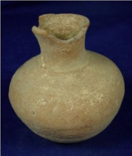 | Description / विवरण | Terracotta Miniature Pot of round shape, tapering body, flat circular base. There is elongated neck and thin averted rim. There are striation marks on the body. The surface is glazed. |