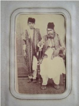 | Description / विवरण | In this photograph, there is an old man sitting on a chair and one young boy standing beside him. The boy is wearing an overcoat, which is highly embroidered, white kurta, white pyjama and shoes. He is wearing a cap. The old man is carrying a shawl. |