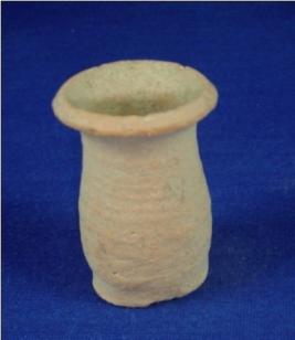 | Description / विवरण | Terracotta vessel, small jar. It has cylindrical body with flat and circular base. The mouth is wide with thick, flat and averted rim. |