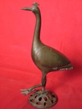 | Description / विवरण | It is an incense burner in the form of a crane. It is hollow from inside. Crane is standing on one leg and is attached to a circular perforated pedestal. |