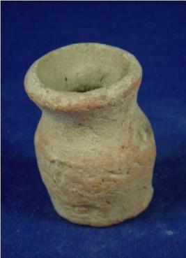 | Description / विवरण | Plain terracotta vessel - tiny jar, with broad mouth, short neck, round body and broad, flat base. |