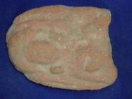 | Description / विवरण | Terracotta female figurine, probably a yakshi in low relief, on an oval base. Only the upper portion, up to the bust, is there. The lower portion is missing. An elaborate hairstyle, face, circular earrings, right shoulder and right breast are visible. It is completely worn out. |