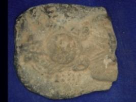 | Description / विवरण | Terracotta female figurine, probably a yakshi in low relief, on an oval base. Only the upper portion, up to the chest is there, the lower portion is missing. She is bedecked with an elaborate head gear having two pearl tussles, hanging at right side and three stranded necklace. The features are rubbed out and the breasts are missing. |