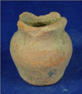 | Description / विवरण | Plain terracotta vessel - small jar, with broad mouth, stout, round body and broad, flat base. |