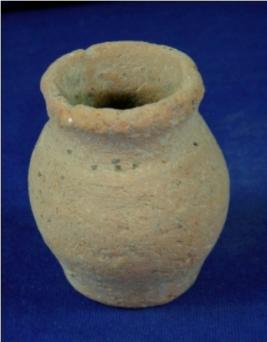 | Description / विवरण | Small plain, terracotta vessel - jar, with broad mouth, round body and broad, flat base. |