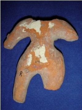 | Description / विवरण | Crudely finished terracotta Mother Goddess figurine in standing pose. The head, right arm, left breast and right leg below the thigh are chopped off. Part of bracelet in the left hand, and a girdle on the waist are visible. The breast is large and the hip portion is broad. |
