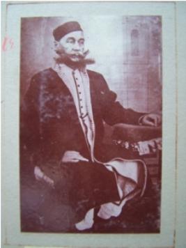 | Description / विवरण | The photograph shows Mr T. Nealthier, collector, sitting on a chair wearing jama, overcoat with decorated corner and turban. He has long beard and moustache. In the background, there is a table upon which Healthier has kept his hand and part of the building is visible. |
