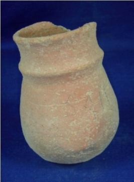 | Description / विवरण | Terracotta vessel with a round cylindrical body. The mouth is broad and neck is differential with body by a thick line. The base oval and the jar has a thick rim. |