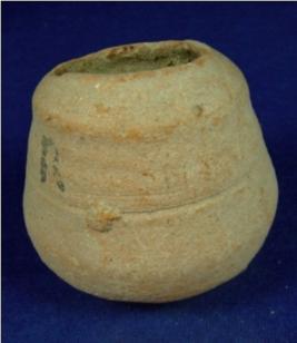 | Description / विवरण | Terracotta vessel - a jar having a cylindrical body. The base is flat and it has broad mouth. The mouth and rim is broken. |