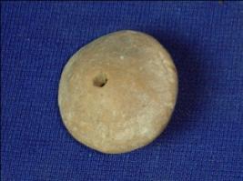 | Description / विवरण | Terracotta wheel, with both the sides raised up in the centers. The center has a hole across it. |
