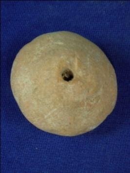 | Description / विवरण | Terracotta wheel, with both the sides raised up towards the center. The center has a hole across it. |