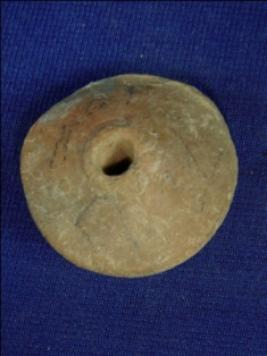 | Description / विवरण | Small terracotta wheel, with both the sides raised up towards the center. The centre has a hole across it. |