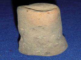 | Description / विवरण | Terracotta Games men, ill fired, having flat circular base. |