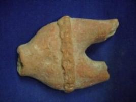 | Description / विवरण | Terracotta female figurine, only waist part is visible. The legs from knee are missing. The figure has a broad hip and a girdle is covering the waist having incised designs. |
