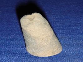 | Description / विवरण | Terracotta Games men, ill fired betel nut shape, broken top having a hole and flat circular base. |