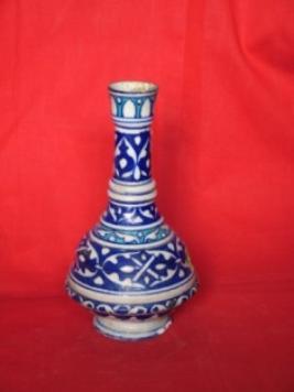 | Description / विवरण | Water bottle, Amber shape, dark blue, turquoise blue and white. |