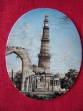 | Description / विवरण | The miniature painting depicts the Qutubminar in which there is an arched gateway. The iron pillar is shown. Besides these trees and vegetation growth on the structure is shown. It is an oval shape. |