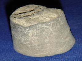 | Description / विवरण | Terracotta Games men, betel nut shape with top broken and flat circular base. |