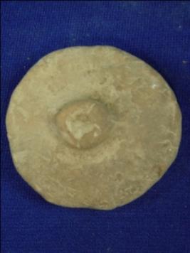 | Description / विवरण | Flat circular terracotta wheel with hole at center to attach it with axle. The hole is filled with mud. The portion near hole is raised upwards. |