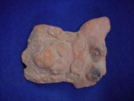 | Description / विवरण | Terracotta figurine of a female on high relief, she is wearing hair ornaments, round earrings and necklace, her breast are prominent but rubbed out, hand are broken and lower part of the body is missing. |