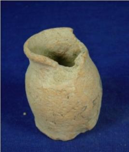 | Description / विवरण | Coarse terracotta jar with long narrow neck, averted thin rim, bulbous shaped body and flat circular base. A part of the neck is broken. |