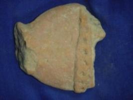 | Description / विवरण | Terracotta female figurine, only the waist part is visible. The figurine has a broad hip and a necklace is seen having some dots design which covered the hip. |