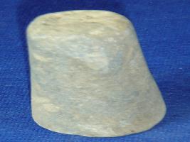 | Description / विवरण | Terracotta Games men, ill fired, betel nut shape with broken top and flat circular base. |