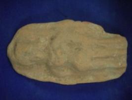 | Description / विवरण | Terracotta standing female figurine on low relief. The figurine has an elaborate head gear and wearing a necklace. Her right left is resting on thigh while her left hand is holding a part of drapery probably . The figure is almost mutilated. |