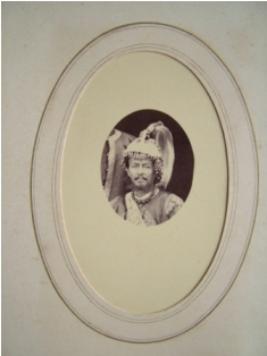| Description / विवरण | The painting shows the bust of Maharaja, wearing a decorated tunic necklace and mukat . In background half part of the chest of a man is visible. |