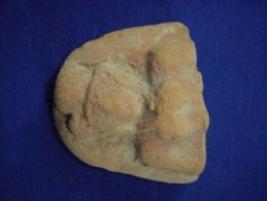| Description / विवरण | Upper part of the body of a terracotta female figurine, having an elaborate hair style. She is wearing a necklace and ear rings. The body below chest is missing, and the whole fragment is mutilated. |