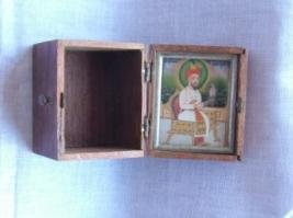 | Description / विवरण | This is a fine specimen of miniature painting and watercolour. In this painting depicts, Maharaja Mansingh ji King of Jodhpur sitting on the throne. The sword is in his right hand. The colour of the dress is purple and the colour of the turban is red and is decorated with golden strips. A halo is shown around his head. Besides this natural scenery is also shown |