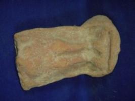 | Description / विवरण | Terracotta female figurine in standing position, on low relief, only the body below chest is visible. The rest part are missing. A girdle is seen on the waist, designed with incised lines. The figure has broad thighs and anklets are seen, the toes are depicted with incised lines. |