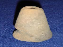 | Description / विवरण | Terracotta Games men betel nut shape with flat circular base and blunt top where the surface is flaked. |