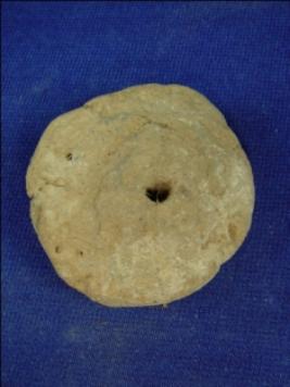 | Description / विवरण | Terracotta wheel with rough surface and thick rim. A hole is seen at the center probably to fix it with the axle. Around the hole the surface is slightly raised upward and one side of the surface is slightly cracked. |