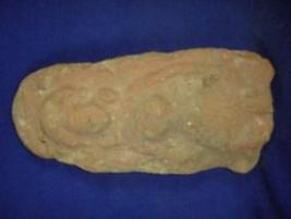 | Description / विवरण | Terracotta female figurine in high relief. The whole figure is mutilated, right hand is partly and legs are missing, the left hand is resting on thigh. She is wearing round earrings. |