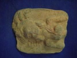 | Description / विवरण | Terracotta female figurine, whose lower portion is missing from waist. She is wearing beautiful head gear with a pearl string hanging from right side, round earrings and necklace. |