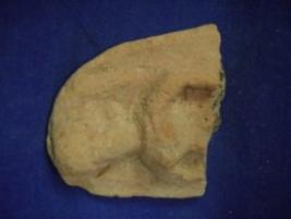 | Description / विवरण | Terracotta female figurine with prominent breasts, lower portion and part of hands are missing. She is wearing a head gear. The features of the face are not prominent. |