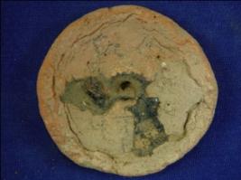 | Description / विवरण | Terracotta wheel with rough surfaces and a hole at the center. |
