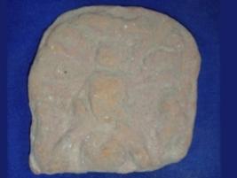 | Description / विवरण | Terracotta figurine of a female in relief. It is probably the bust of a Mother Goddess. The face is completely rubbed off and features cannot be identified. There is a lock of hair on the head. Around the head are pearl strings and feather line designs. |