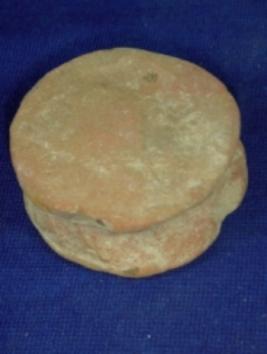 | Description / विवरण | Flat and circular terracotta Ear ornament, surface is rough and flat and grove in the middle. |